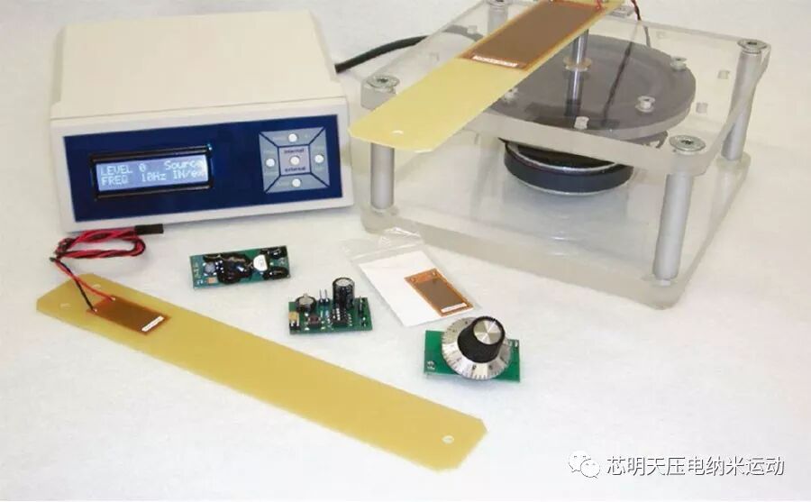 能量捕获系统包含一个振动器,一个放大器模块,三个能量捕获模块,2片粘贴于悬臂梁的MFC及1片供额外使用的MFC。