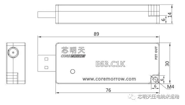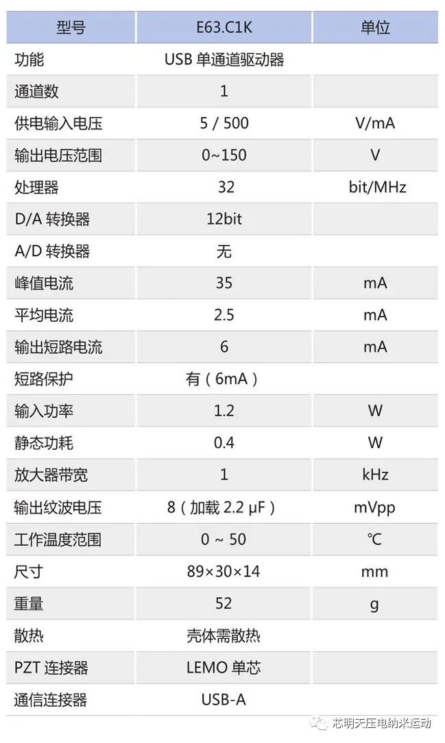 工业式E63.C1K为小体积单通道开环低动态压电陶瓷控制器,USB上位机软件控制及供电。