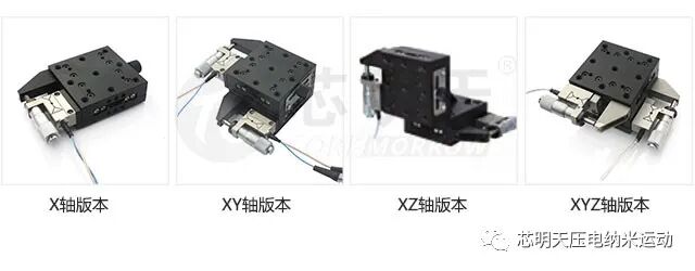芯明天具有两种标准压电宏微复合平台,分别为P83、P84系列,两者粗调行程相同,都为13mm,精调行程分别为25μm和100μm,下图为芯明天P83系列,P84系列与P83系列外形近似。