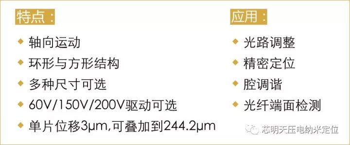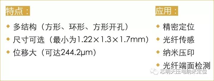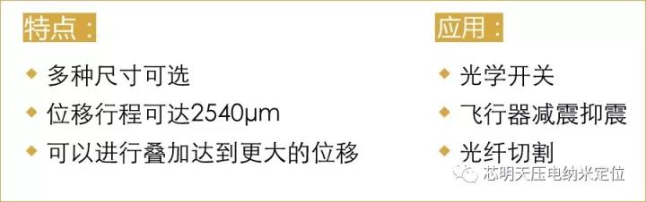 叠堆型压电陶瓷为轴向致动型压电陶瓷,包括方形与环形两种外形结构,可定制方形开孔或其它形状结构。