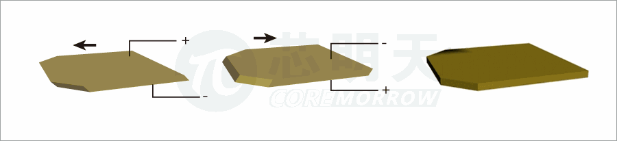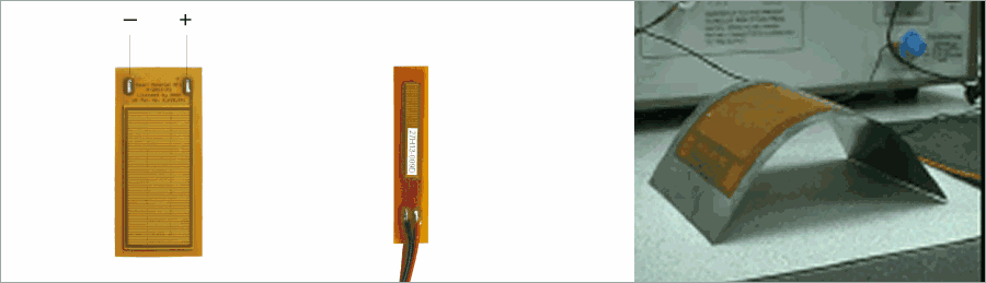 压电纤维片由压电纤维棒组成的压电纤维复合材料,在电压驱动下,会产生有横向伸长、收缩以及45°方向伸长与收缩多种形变方式,通过将压电纤维片与金属片粘接贴合的方式带动金属片进行弯曲与扭转形变。也可以通过压电纤维片的形变产生电压信号,作为传感器使用。