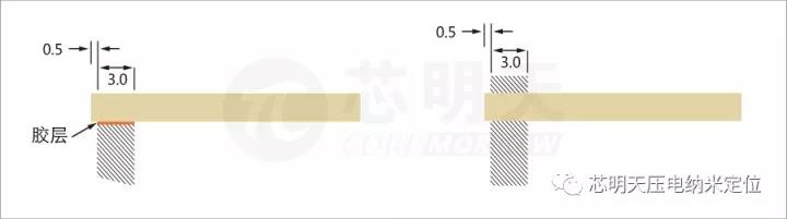方形弯曲片:胶要涂抹在非致动区域3mm以内,以免影响位移。