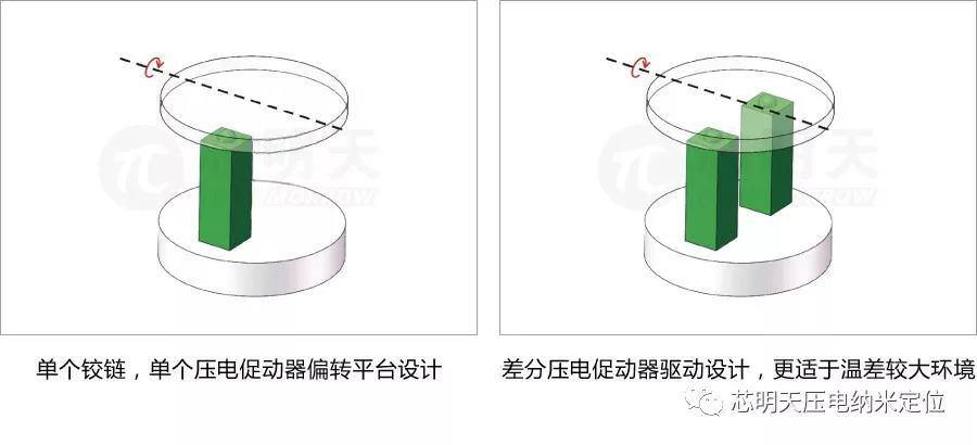 另一种为双压电促动器驱动型,即由两支陶瓷促动器共同的运动来驱动平台台面偏转,这种结构的优点是可承载大,适用于工作环境温度变化范围较大的应用。