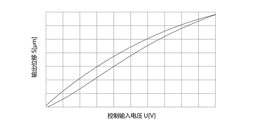 外螺纹式压电促动器为开环式,即内部无闭环反馈传感器,它的电压与位移曲线如下。