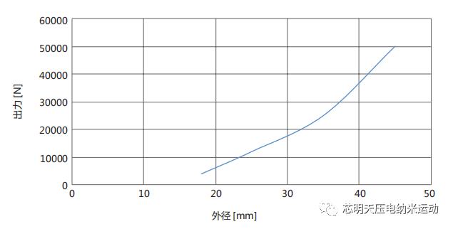 高压柱形促动器的出力与横截面积成正比,外径越大,出力越大,VS45系列的出力可达50000N,承载可达70000N。