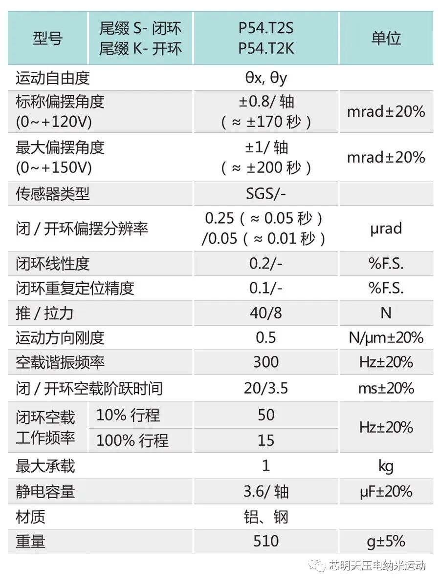 P54系列是中心通孔二维θxθy轴压电偏摆台,采用无摩擦柔性铰链结构设计,响应速度快、闭环定位精度高,80×80mm中心大透空孔方便集成于显微及扫描等光学系统中。
