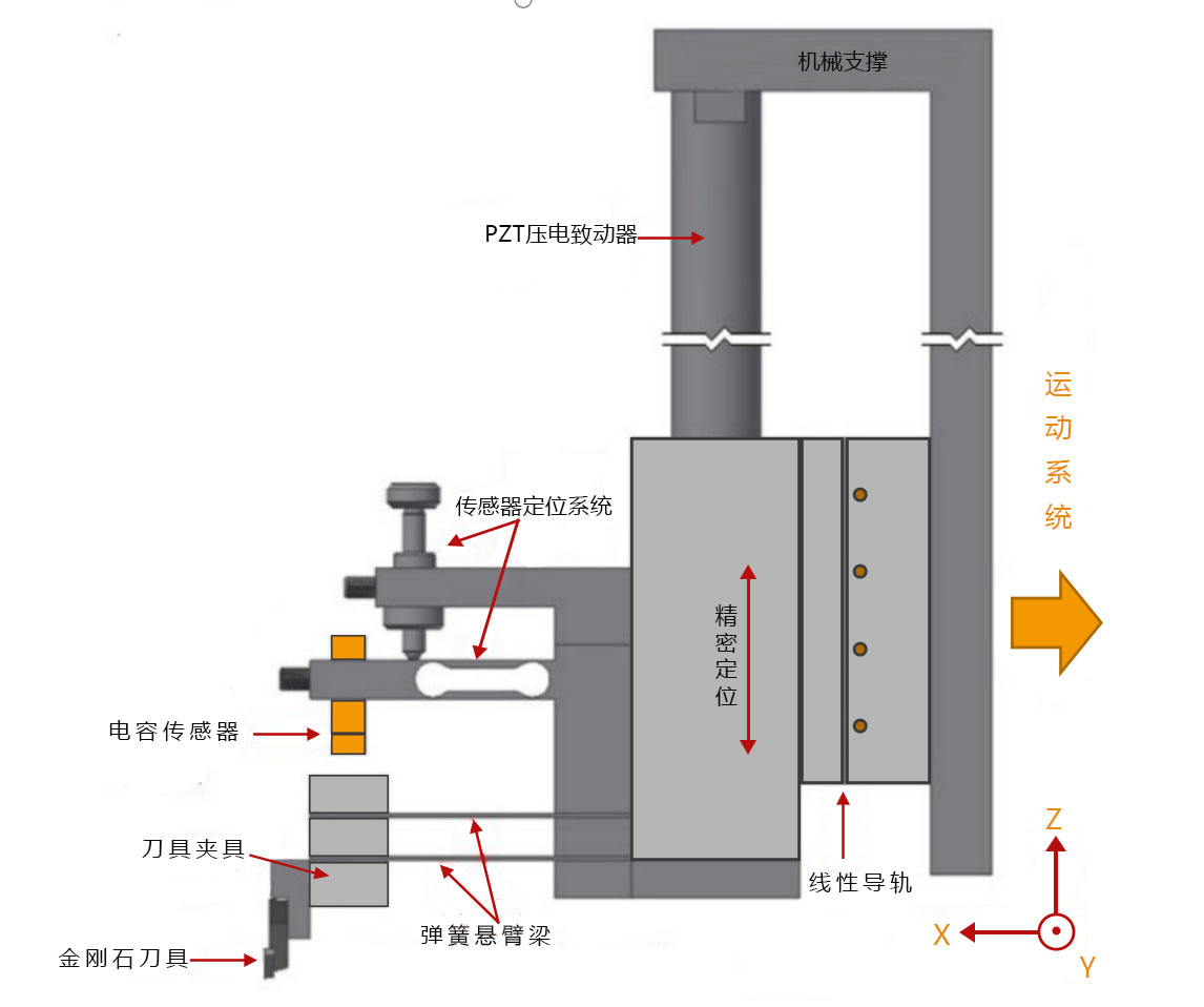 使用金刚石工具的技术来制造微结构和微槽可用于平面加工,它需要利用压电快速刀具定位台的超高精度运动机构和复杂的控制系统以获得所需的纳米/微米级精度。这种切削机构通过其进给机制设置切割深度,所生产零件的精度直接取决于压电快速刀具定位台的精度。