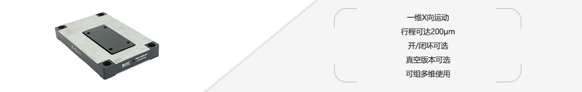 P60.X200系列压电纳米定位台采用机构放大设计原理,柔性铰链连接支撑传动,内部采用高可靠性压电陶瓷驱动,在X轴可实现达200μm的位移,可配置闭环传感实现高精度扫描与定位。平台可以通过叠加转接的方式实现二维、三维运动。
