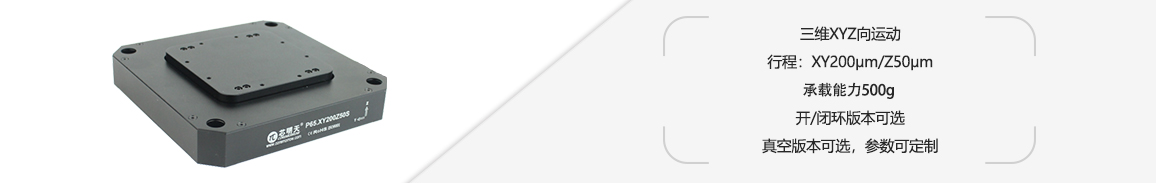 P65系列高分辨率压电纳米定位台是以压电陶瓷作为驱动源,结合柔性铰链机构可实现X轴、Y轴和Z轴三维精密运动的压电平台,驱动形式为放大机构式驱动。内置高性能压电陶瓷,可实现XY200μm、Z50μm的位移。开/闭环版本可供选择,真空版本可定制,更大行程版本可定制。闭环定位精度可达XY0.017%F.S.、Z0.006%F.S.,非常适合高精度定位应用。