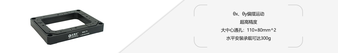 S54.T1S/K-C系列压电偏摆台是一款高精度压电偏摆台,可产生θx、θy二维偏转运动,位移可达θx2、θy1.5mrad。整体采用无摩擦柔性铰链结构设计,具有响应速度快、定位精度高的特点。配合闭环传感器可实现0.011%F.S.的重复定位精度,适用于各种高精度应用。同时中心具有大中心通孔设计,透光孔径为110×80mm^2,适用于透射光应用等。