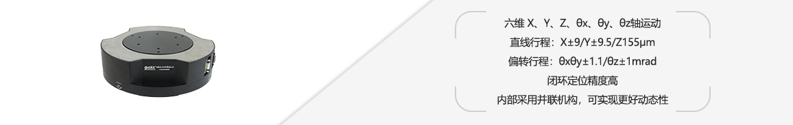 H64A.XYZTR2S/K-C系列是X、Y、Z、θx、θy、θz六轴运动压电纳米定位台,可产生六轴的超精密运动,适用于静态定位和动态调姿。该定位台内部采用并联机构设计,可实现更好动态性。其内置高性能压电陶瓷,可实现X±9/Y±9.5/Z155μm的直线位移和θxθy±1.1/θz±1mrad的偏转角度。闭环版本全桥设计避免了温度的漂移,确保了纳米级定位精度。