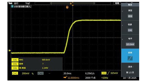 带载阶跃时间 H64A.XYZTR2S-C带载12kg,1Hz,满幅值,X轴阶跃时间约40ms