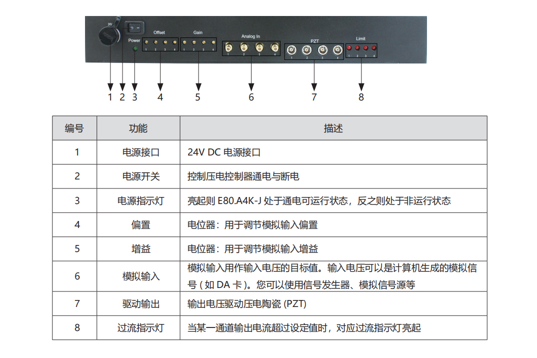 E80.A4K-J为4通道,开环版本控制器,输出电压范围为0~150V,可通过模拟输入电压进行控制。