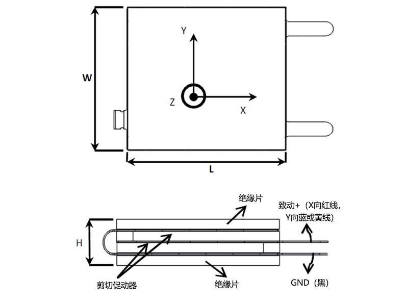 剪切片的电极在上下表面。它可以通过机械夹持或胶水进行固定安装。