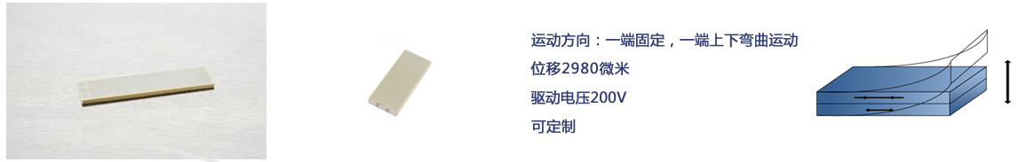 方形弯曲片是将其一端固定,通过压电陶瓷控制器驱动,压电弯曲片另一端会上下摆动,或单方向摆动。可提供闭环版本。