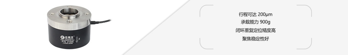 P76 系列大负载压电物镜定位器为大负载 Z 轴运动压电物 镜定位器,负载能力可达 900g,Z 轴直线运动范围可达 200μm,采用柔性铰链设计机构,无摩擦,直线性好,闭 环型号定位精度高。分离式螺纹适配器设计,可适配多种型 号的显微镜。