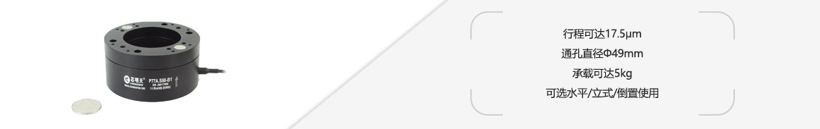 P77A.S/K50大负载压电纳米定位台/移相器是专为光学检测移相应用而设计,行程范围可达17.5µm,负载能力可高达5kg,非常适于各种镜片、镜头的光学检测设备。