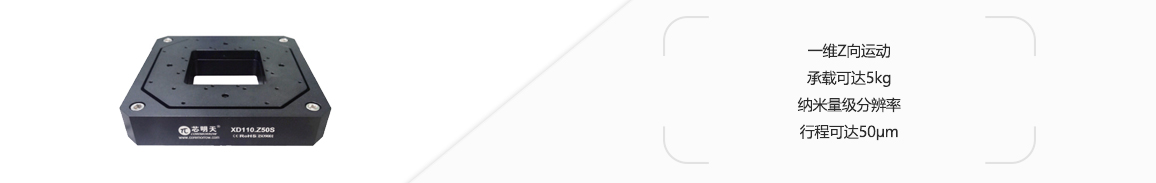 XD110.Z50系列高分辨率压电纳米定位台是一维Z向运动的压电平台,可实现50μm位移。它的中心具有方形通孔,适用于样品显微成像应用。