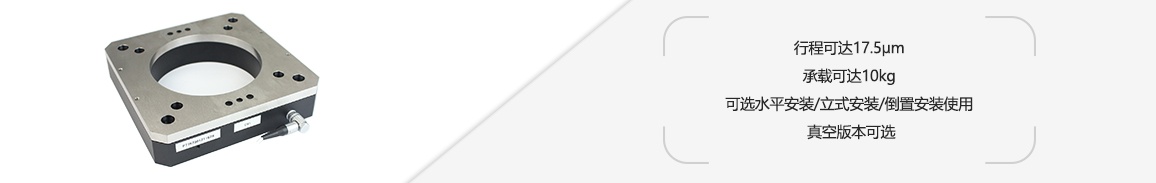 P77.S/K106-A大负载压电纳米定位台/移相器是专为光学检测移相应用而设计的,它的中心通孔直径为106mm,水平安装、立式安装、倒置安装使用的承载能力分别可达10kg、5kg、5kg。P77.S/K106-A系列是采用压电陶瓷直驱式结构,保证了出力性能,同时内部优化的机械结构设计,对压电陶瓷也起到了完美的保护作用,确保了使用寿命。